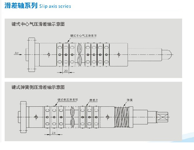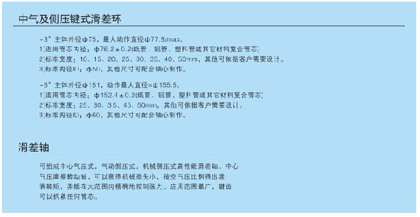1.可組成中心氣壓式、氣動側(cè)壓式、機(jī)械側(cè)壓式高性能滑差軸,分切卷料窄、承重量大、適應(yīng)性強(qiáng)